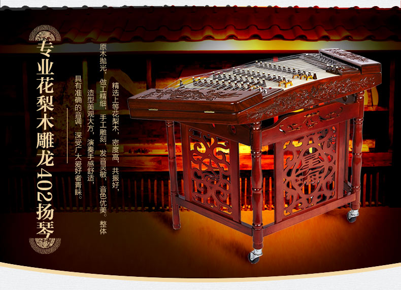 星海402揚琴花梨木雕龍揚琴